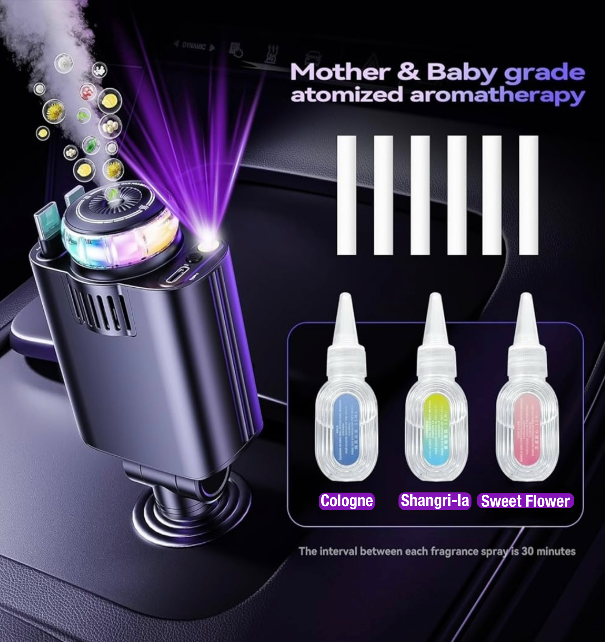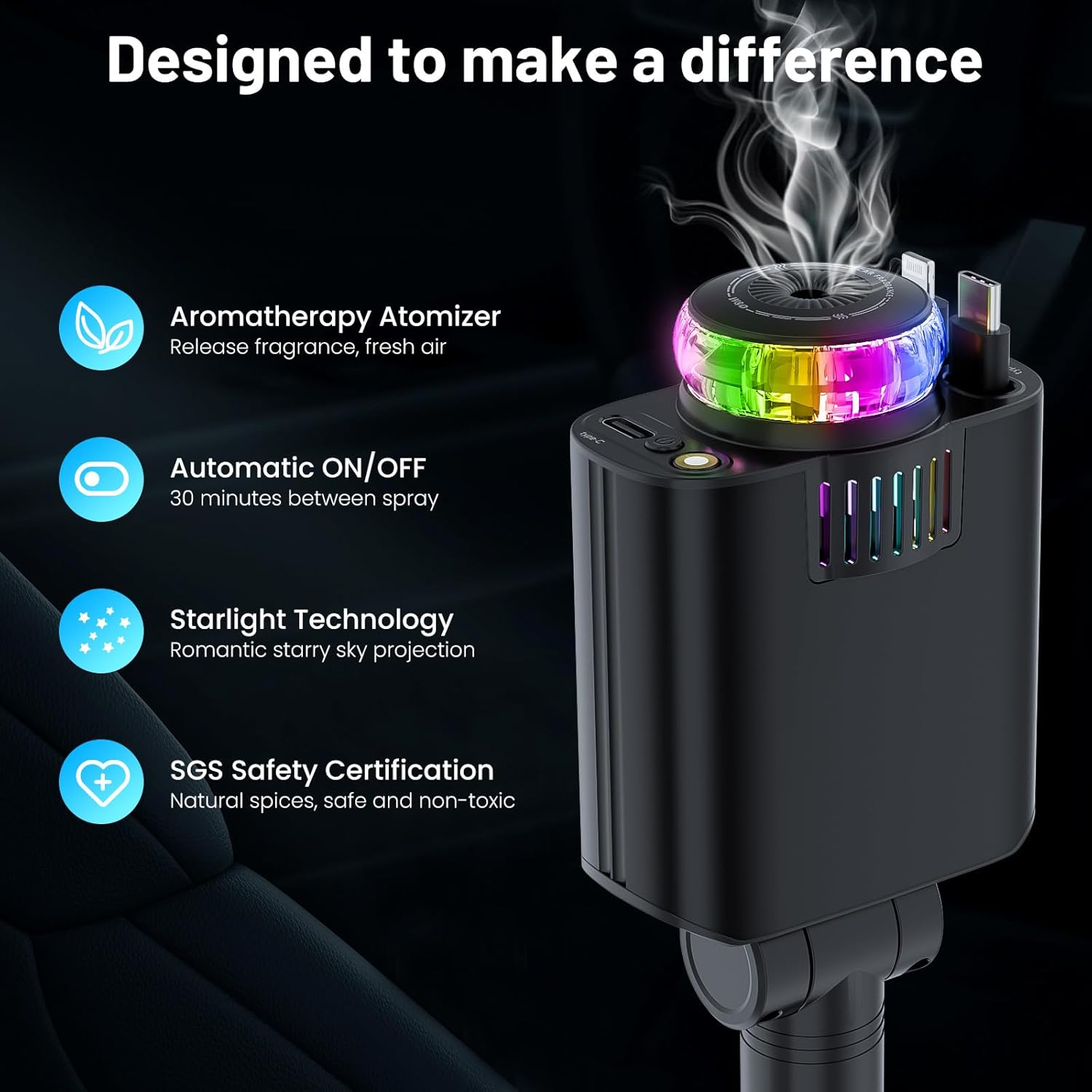 Unlike others, our car charger combines fast charging, soothing scents, and ambient lighting to enhance a knot free, fragrant, and well-lit car experience.